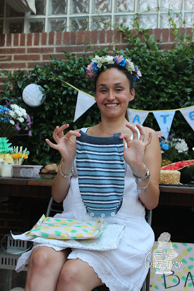Aquí os dejo una foto de la mamá cuando recibió el regalito en su "Baby Shower",