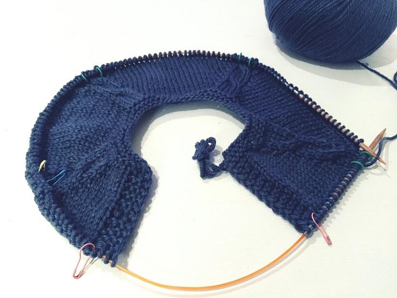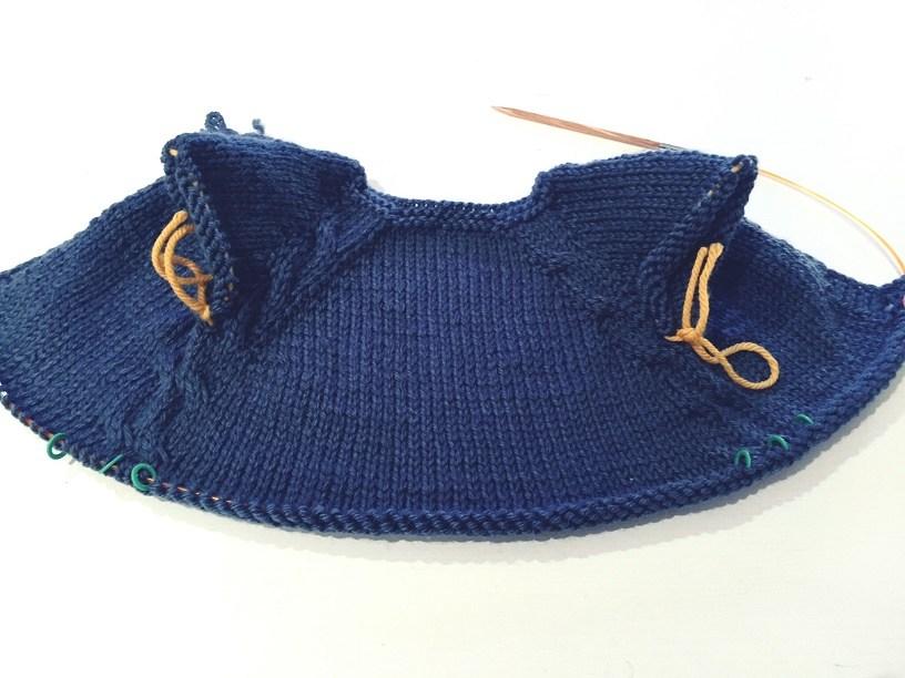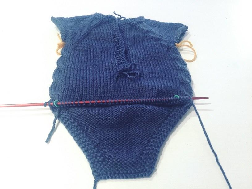 Terminamos de tejer el cuerpo en redondo. En este momento, tienes en las agujas 90 puntos.