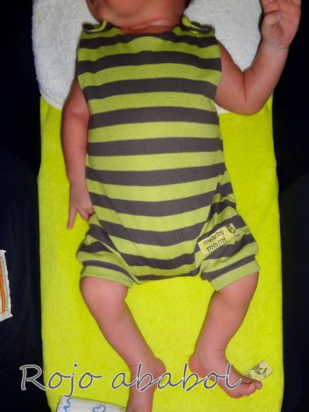Qué chiquitín lo veo... Y es que estas ranitas las cosí en talla recién nacido (0-3 meses) pero aunque apenas tiene mes y medio el gusanito no es nada pequeñito...y ya estoy cosiendo talla 3-6 meses!!