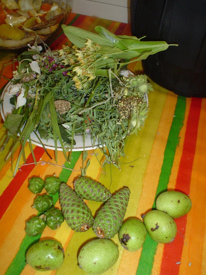 Con la llegada de Sant juan y hay que poner LA RATAFIA, (licor de hierbas) . Lleva mas o menos unas 40 hierbas diferentes y despues hay que dejarlo 40 dias al sol.