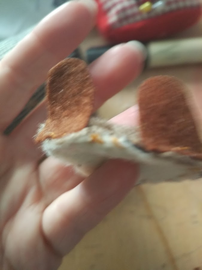 También hay que cortar unas orejas de fielto. Comencemos a coser todas las piezas.