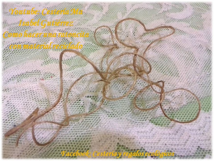 Toda la figura la forramos con mecate o hilo de yute, pero de igual manera podemos sustituir por restos de estambre o hilo grueso para tejer...