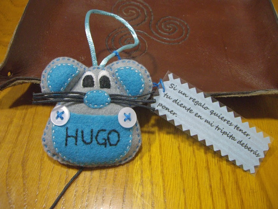 Ratoncito Pérez guardadientes en gris y azul para Hugo