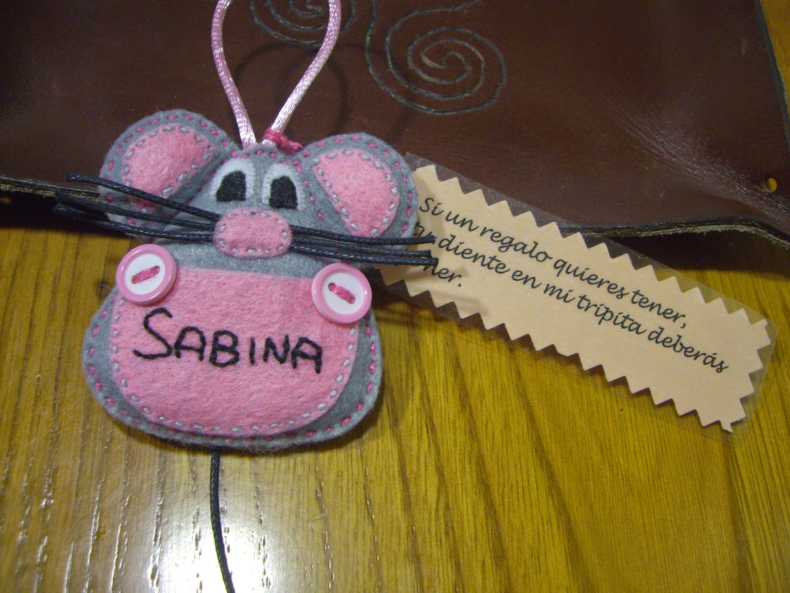 Ratoncito Pérez guardadientes en gris con los detalles en rosa para Sabina