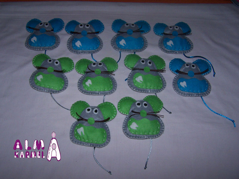 Buenos días, hoy os enseño un encarguito de ratoncitos, estos han viajado hasta una clínica dental, y seguro que sus futuros pequeños dueños estarán encantados con ellos :)