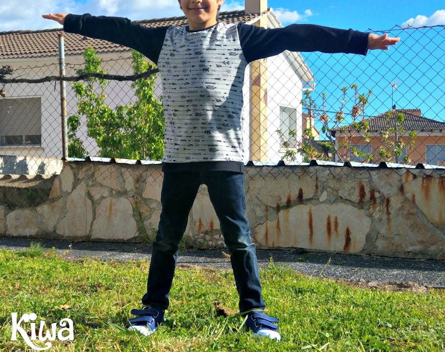En esta ocasión con telas de camiseta. Flechas para el cuerpo y negro para las mangas.