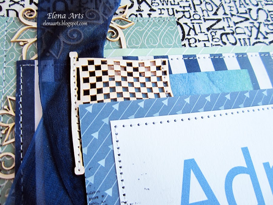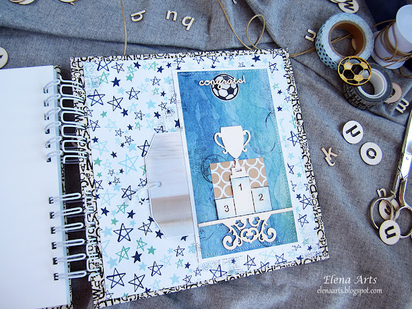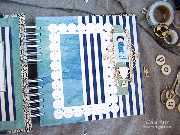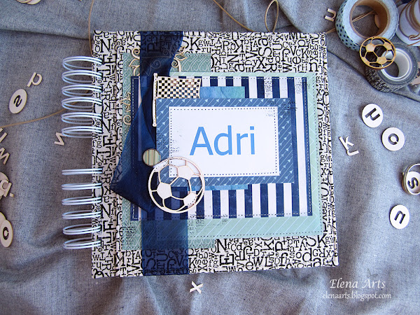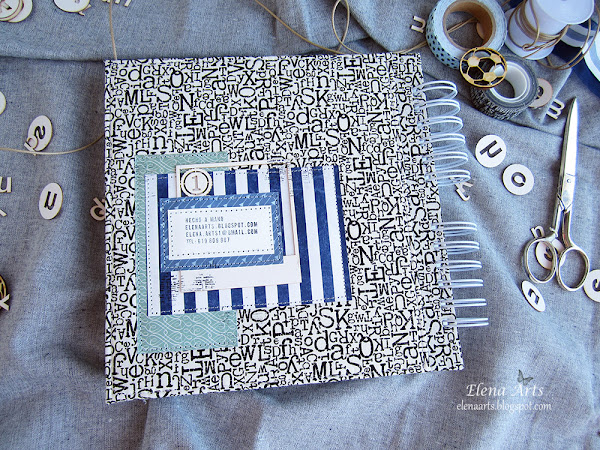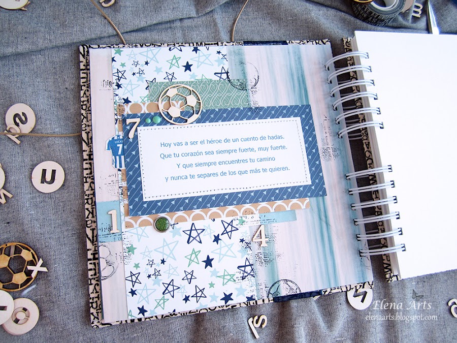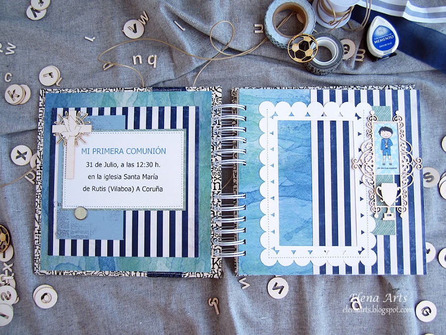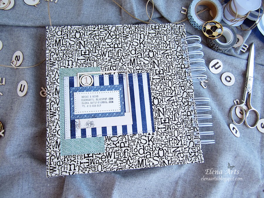 Este libro tiene la encuadernación de espirales y las tapas son acolchadas cubiertas de una tela de algodón. Por dentro es bastante sencillo pero la gama de los colores me encanta! Este papel a rayas le da mucho juego a las páginas y los chipboards un toque elegante.
