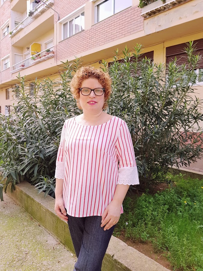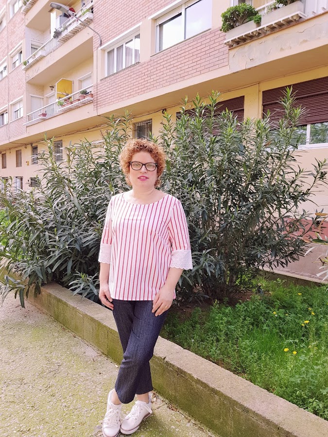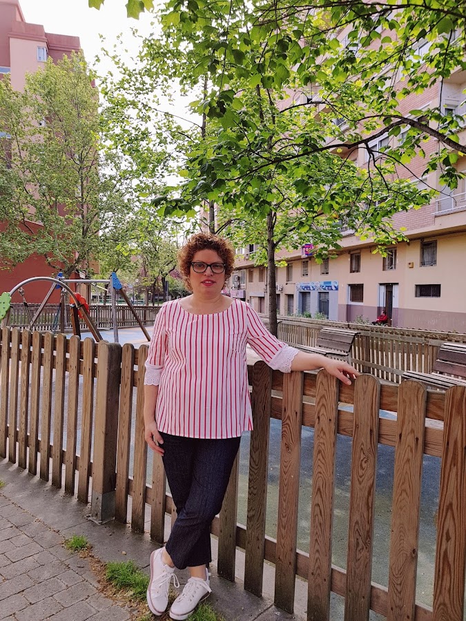 Me encantan las rayas marineras , de colores , anchas , finas ......por eso cuando quise aprovechar este retal de rayas que tenia en casas y vi que no me llegaba para las mangas me las ingenie para hacerme esta blusa.