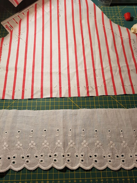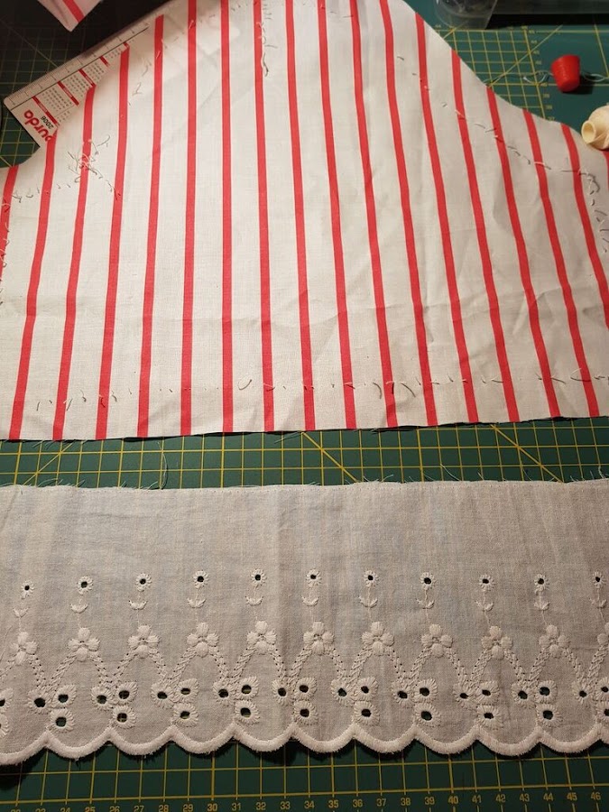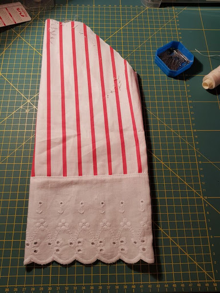 Asi es como coloque la puntilla , si os fijais bien en la foto , la puntilla lleva unos bordados muy bonitos.
