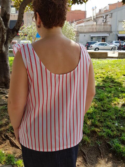 En la parte trasera del top lleva un gran escote redondo , que hace mucha calor.
