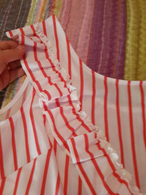 Otra vez la combinacion rayas y volantes , pero esta vez en version verano , la primera la podeis ver aqui RAYAS Y VOLANTES.