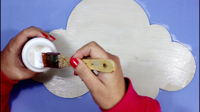Pintar de color claro la silueta de madera para aclarar la superficie y que no se distorsionen los colores del papel.