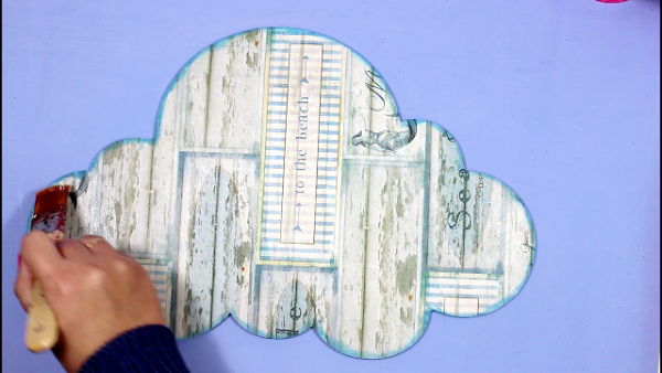 Planchar el papel sobre la silueta de madera poniendo entre la plancha y el papel decorado,