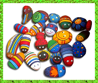 4- Pintar la piedras con la pintura acrílica adecuada, siempre teniendo mucho cuidado y esmero de no salirse de los contornos realizados en lápiz.