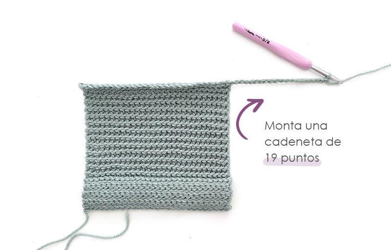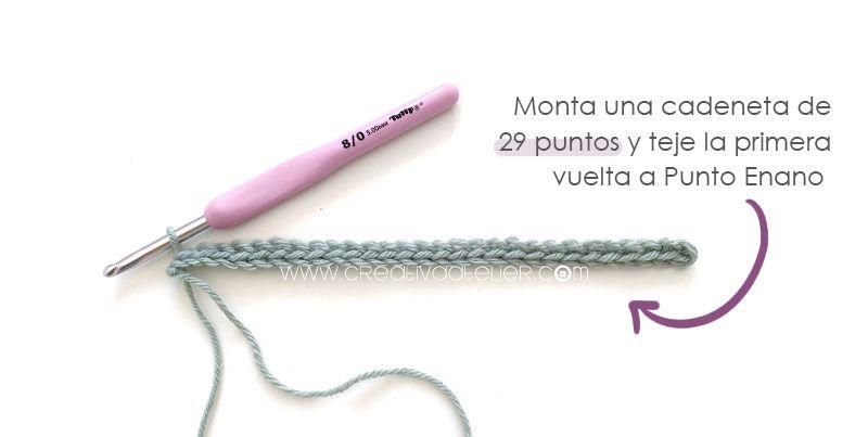 Ten siempre en cuenta que a lo largo de todo el patrón, antes de iniciar cada vuelta, debes tejer primero una cadeneta de subida.