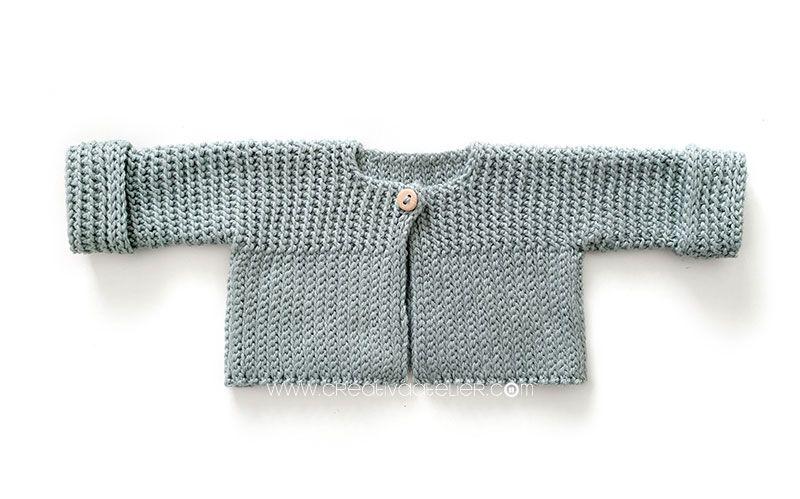 Como puedes ver, esta es una forma única y sencilla de crear una rebeca para bebé, comenzando desde una manga en lugar de empezar por el cuello o el bajo, como vemos habitualmente. Además, la combinación del punto bobo a crochet por el lado de derecho y de revés, le proporciona un toque distintivo y encantador.