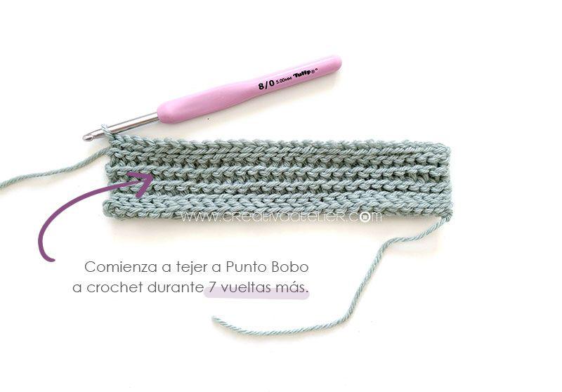 Teje a Punto Bobo durante 6 vtas más o hasta haber completado 4 crestas en el puño.