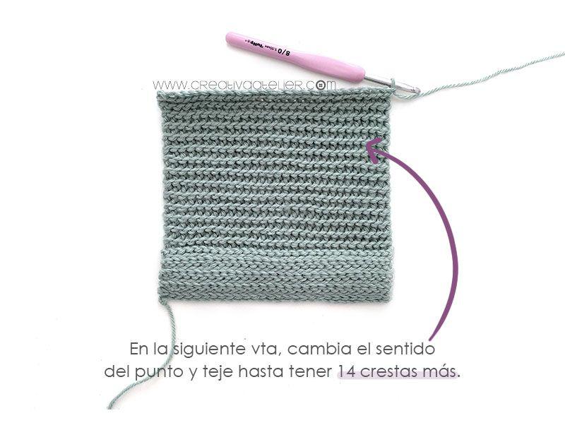Para continuar tejiendo este punto solo tienes que ir repitiendo las vueltas 2 y 3 tantas veces como sea necesario, hasta que tu pieza alcance el tamaño que quieras.