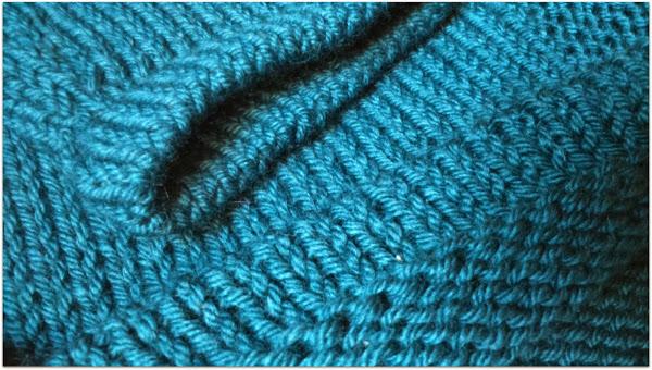 Tanto los puños como la parte baja de la rebeca los rematé de una forma distinta. No sé cómo es su nombre "científico" .Yo lo llamo "subir puntos". Como esto lo suelo hacer al principio, en el montaje de puntos y para esta rebeca me quedaba para hacerlo al final..no problem.Lo hice a parte y lo cosí a la rebeca con costura invisible. ¡Perfecto!