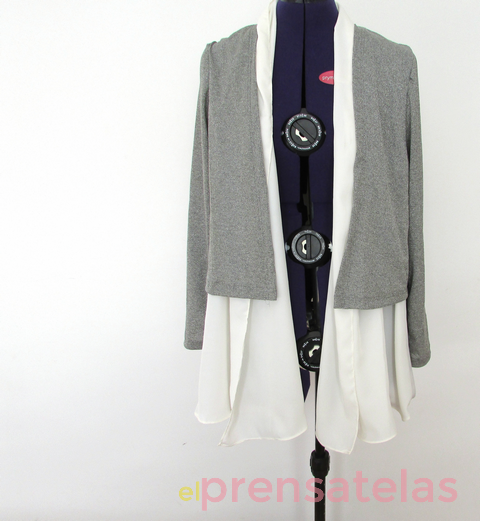La tela de la rebeca larga es un poliester crudo que también tenía guardado para una blusa. Las dos rebecas están unidas por el cuello y las mangas: