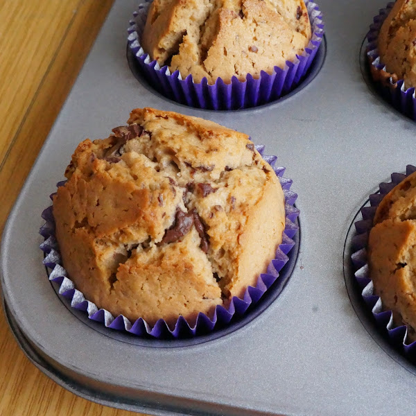 Pues bien, la receta la tomé de La repostería de Miguel y es que al ver las fotos me entraron unas ganas locas de hacer esos muffins...La he modificado un poco a mi gusto, ya que por ejemplo en mi casa no solemos comprar aceite de girasol y tampoco tenía tulipas para muffins, pero saben igual en unas capsulas para cupcakes creo yo. En vez de usar extracto de vainilla en casa tenía de limón así que fue el que utilicé. Y como no tenia chips de chocolate aproveche una tableta de chocolate negro, la trocee y listo!