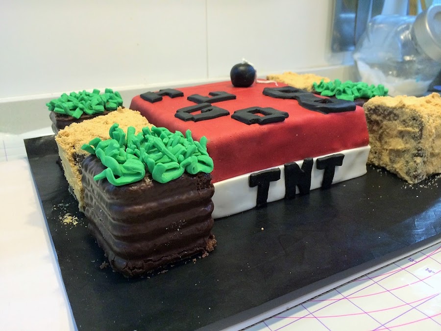 Como todos los niños de su edad está como loco con Minecraft así que me lié la manta a la cabeza y, aunque anoche acabé a las mil de hacerla, ha merecido la pena tras ver su carita esta mañana je je.