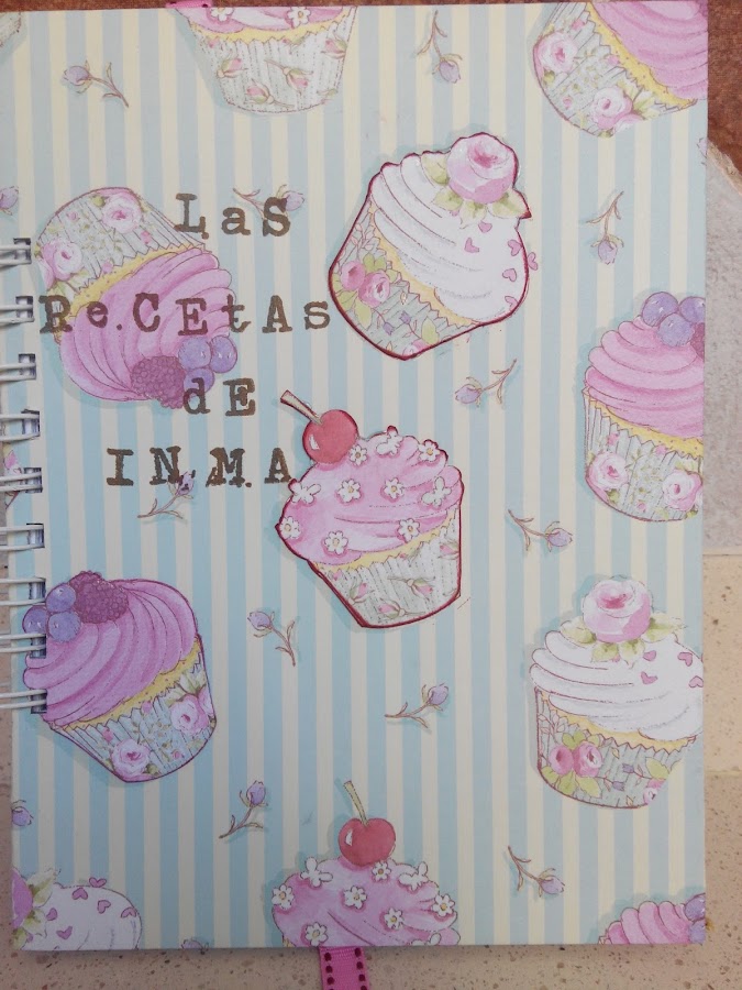 En fin, a lo que voy. Mi amiga Inma, decidió que nos reuniéramos en su casa toda la pandi para hacer un arroz negro y celebrar su santo. Como me había comentado que tenía todas las recetas apuntadas en una agenda del año de "maricastaña", decidí hacerle un recetario para regalárselo. Es muy sencillo, tipo cuaderno, pero muy práctico porque lo tienes en cualquier cajón de la cocina y echas mano de él en un momento.