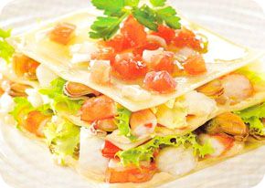 2. Lasaña fría de salmón y gambas