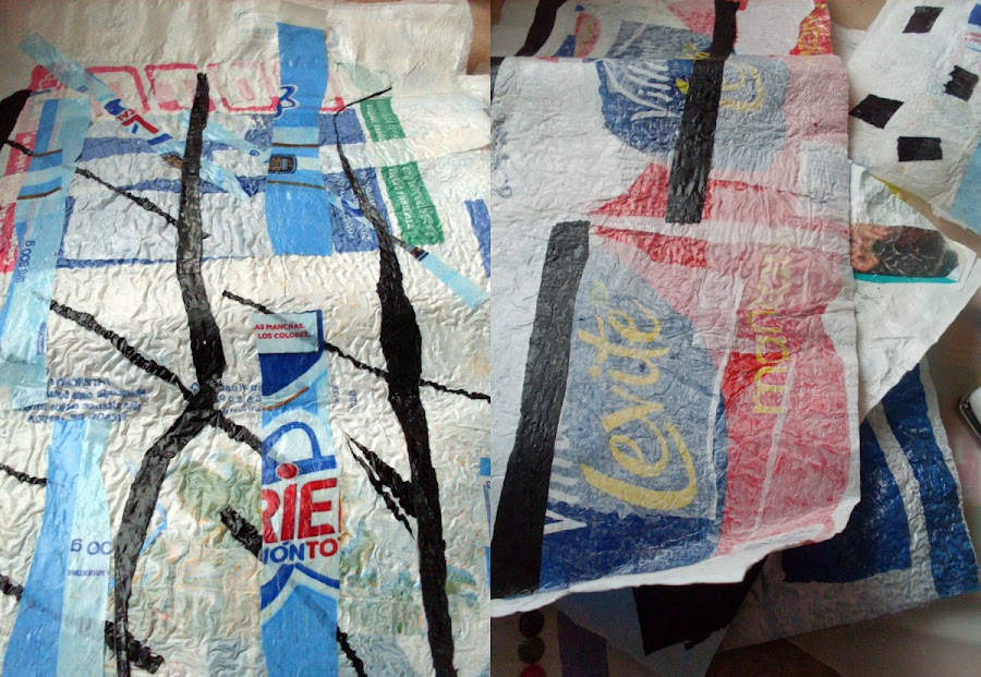 Después podes recortar pequeños trozos de bolsas y ponerlos en lugares que contrasten con el fondo formando dibujos.