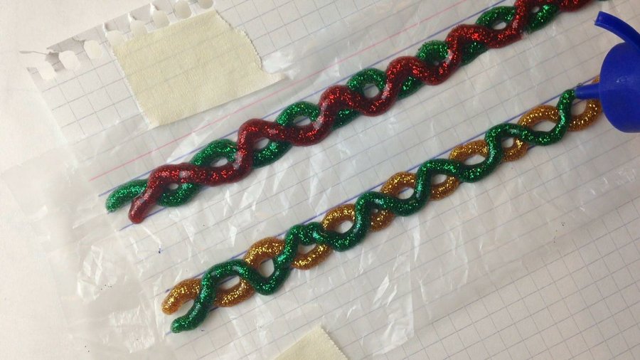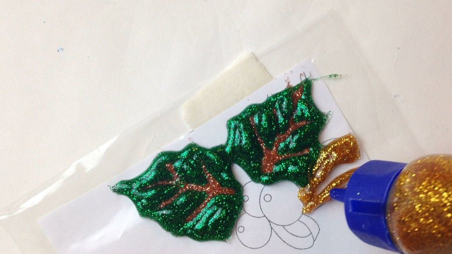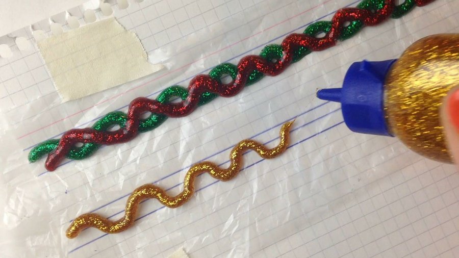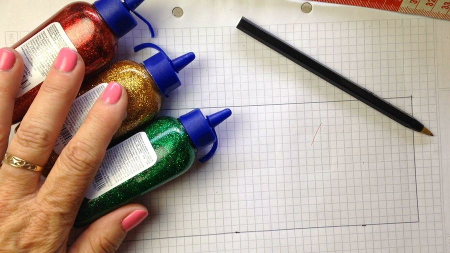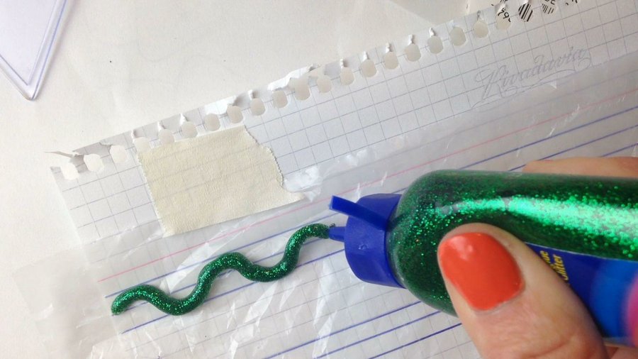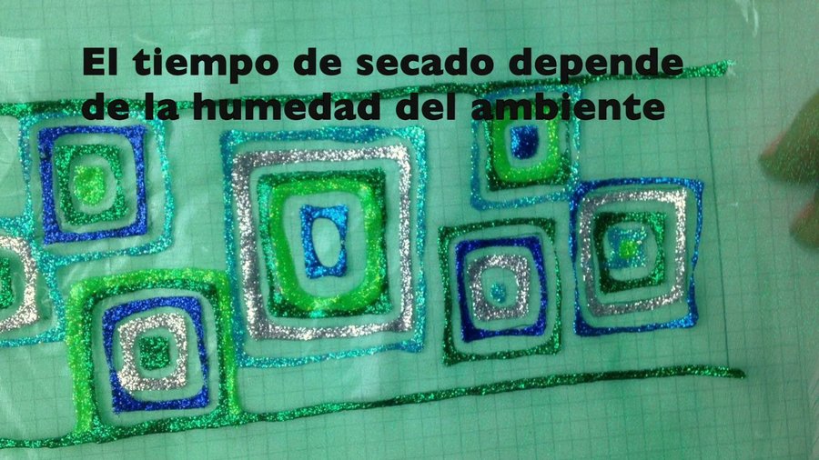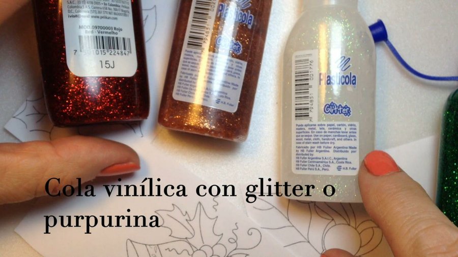 Para el primer modelo emplee glitter, que es una mezcla de pegamento escolar transparente al agua con brillantina.