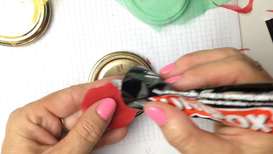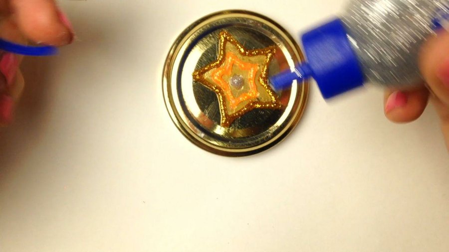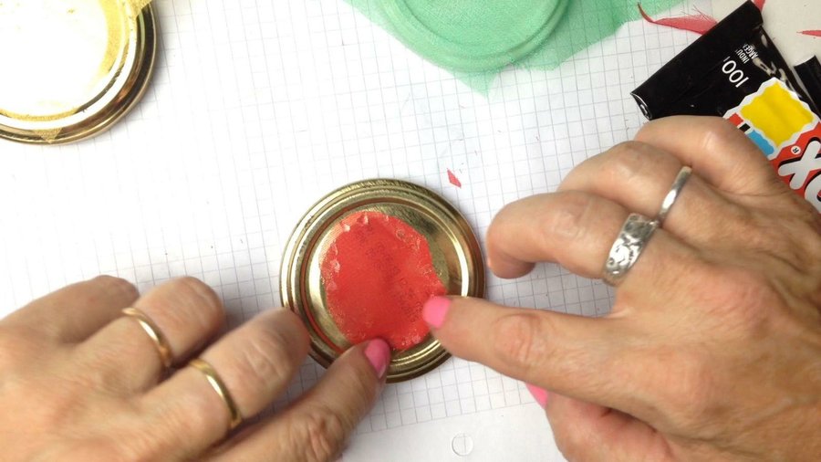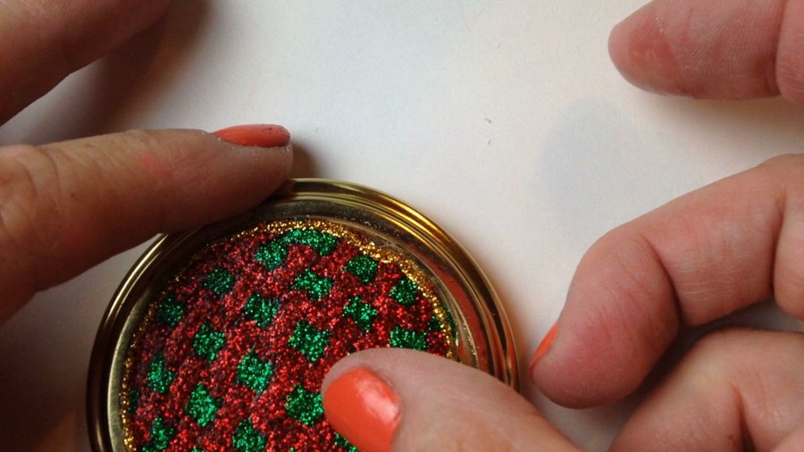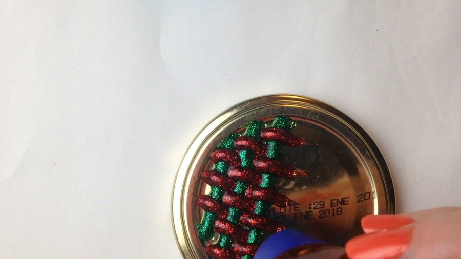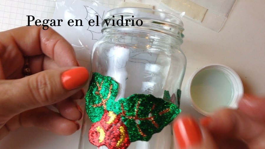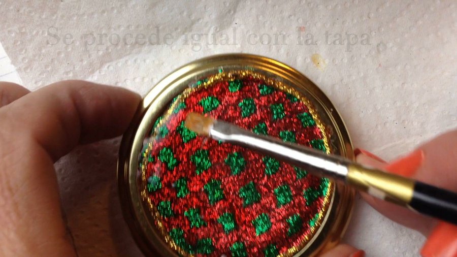 Para pegarlo en el frasco pueden ampliar laca, barniz acrílico o cola vinílica, lo que tengan. Lo hago con los dedos o con un pincel.