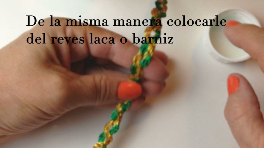 Inmediatamente después la otra onda por encima de la primera pero intercalando las ondas, quedando así una especie de trenza de 2 colores.