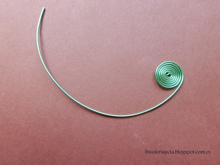 Cortaremos un trozo de alambre, lo iremos enrollando y después lo pegaremos en en centro de la flor.