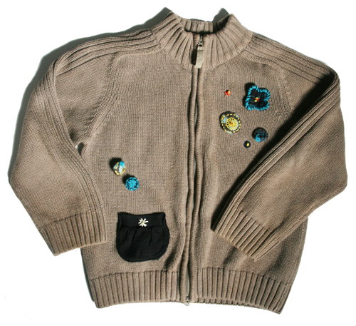 Antes He utilizado los accesorios de una chaqueta vieja que tenía por casa y he recuperado botones forrados, el bolsillo y un pequeño broche que tenía en un cajón. Lo he cosido todo a la chaqueta y este es el resultado, ¡mi hija está encantada!