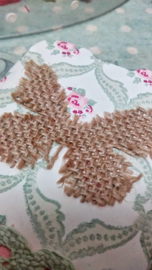 No podía faltar una mariposa!! esta es de tela de arpillera o tela de saco.
