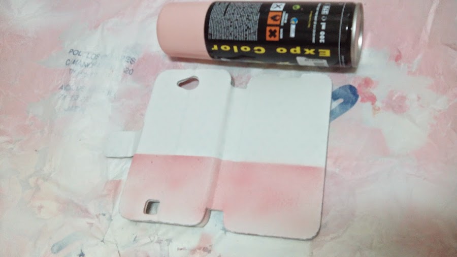 Le pinté la parte de abajo rosa, pues la servi que iba a usar en esa zona quedaba muy pálida sobre el blanco... de nuevo con spray...