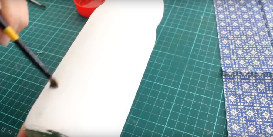 Una vez que la botella está completamente lijada, procedemos a retirar con un paño cualquier resto de polvillo y ahora sí podemos aplicar 2 manos de pintura acrílicas dejando secar entre mano y mano.