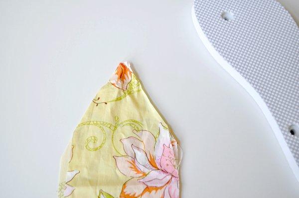 Ata firmemente las telas con un doble nudo. El nudo quedará ajustado en el pequeño hueco donde se sostenían las cintas originales.