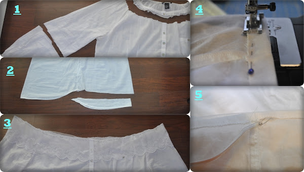 Cortamos las mangas a la altura de los codos. Y cortamos el cuello de hombro a hombro.