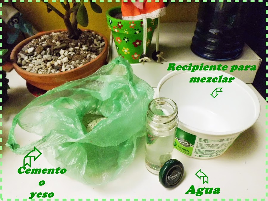 Se prepara el cemento, de hecho se puede teñir con colorantes vegetales de cocina si lo quieren dejar en otras tonalidades, pero yo decidí dejarlo blanco, igual les comento que en las floristerías venden algo llamado "Esponja Floral" que se utiliza para hacer arreglos, pero como mi idea no era gastar dinero, utilicé el cemento cuyo resultado es prácticamente el mismo, además con el peso logrado por el cemento se evita que el viento tumbe las tazas, si se usan en exteriores.