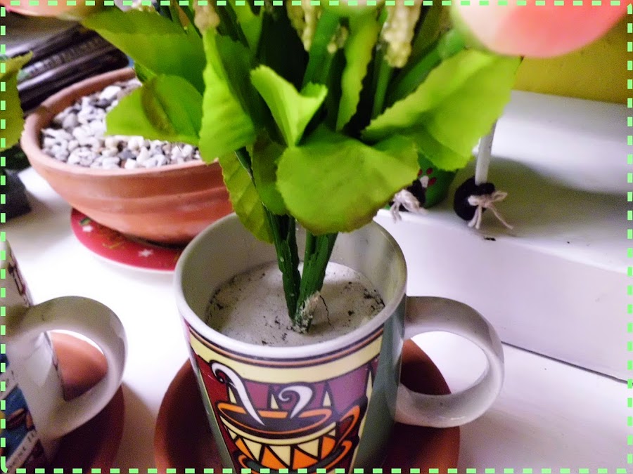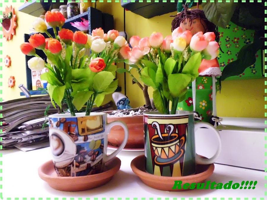 Y por supuesto, las tazas que ya no utilizo -ni utilizaré- para tomar café, ya que, al usar cemento o yeso, éstas no se pueden volver a utilizar para otra cosa.