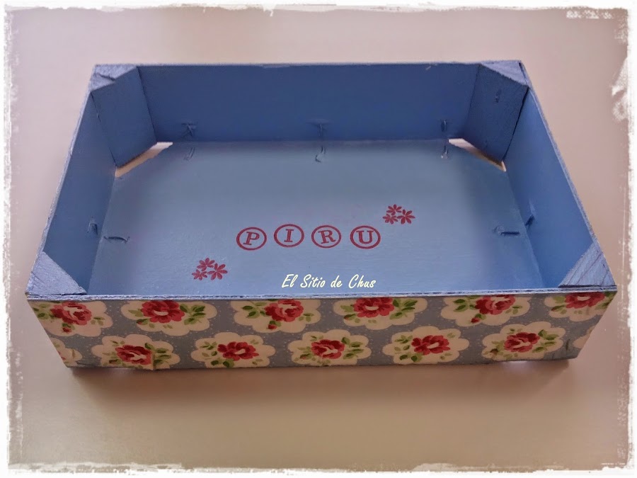 Y ésto es lo que la hice, averigué su color favorito, le corté las patitas a la caja, elegí una bonita servilleta, y voilá!.