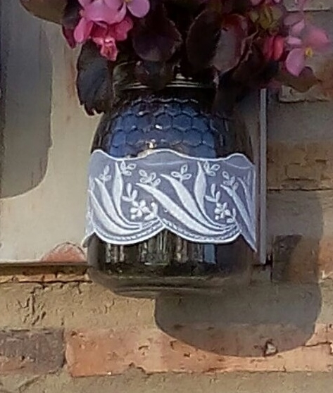 Adorné los botes con unas tiras de encaje, que pegué con cinta de doble cara.