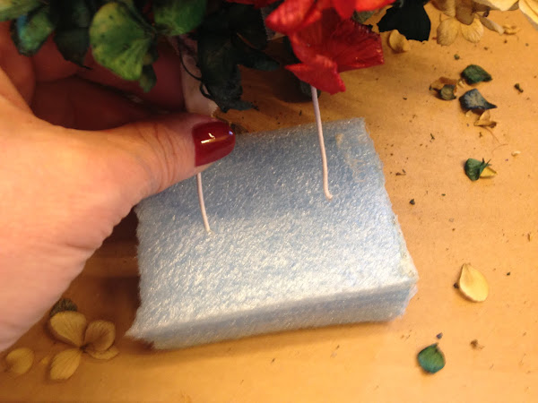 Coloque los alambres a un trozo de esponja densa para que no se mueva y quede firme al colocarlo en la canasta.