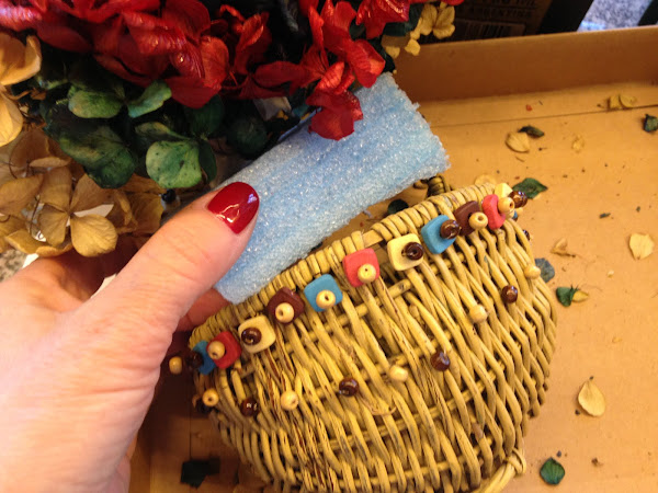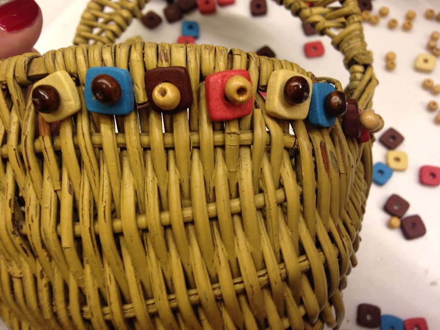 Le agregué una segunda hilera con cuentas de madera redondas para tapar algunos agujeros que tenía la canasta