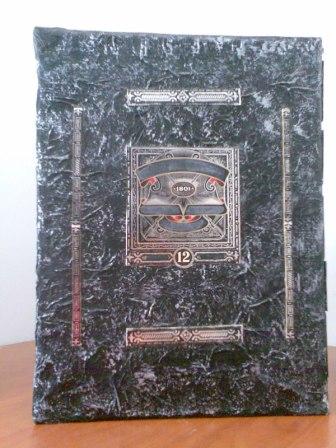 Tanto el dorso como delante y detrás de la cobertura se a decorado con dibujos de la caja de whisky, de esta manera toma un aire medieval.