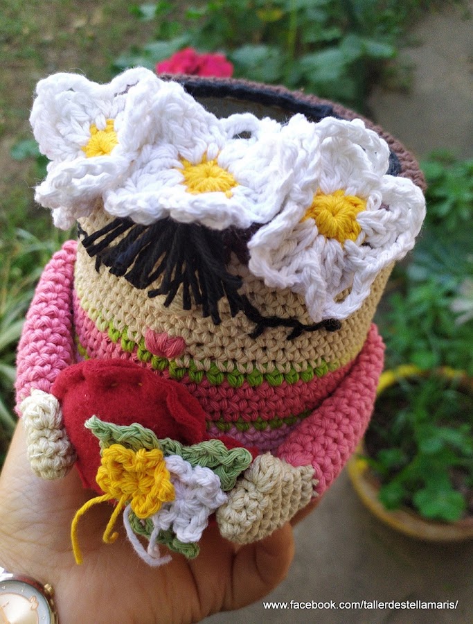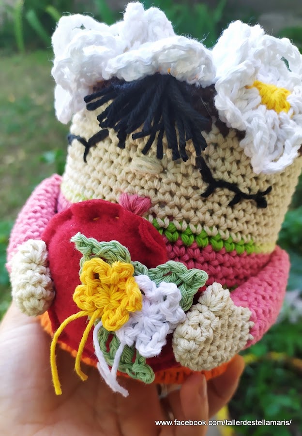 Tejer y pegar tres Margaritas a manera de coronita en la Cabeza;