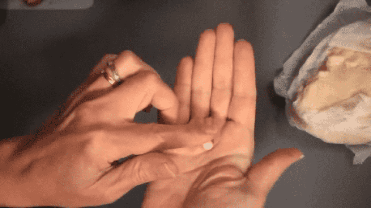 manos de este modo después la voy a ir achatando hasta que quede de forma ovalada para hacer una etiqueta.