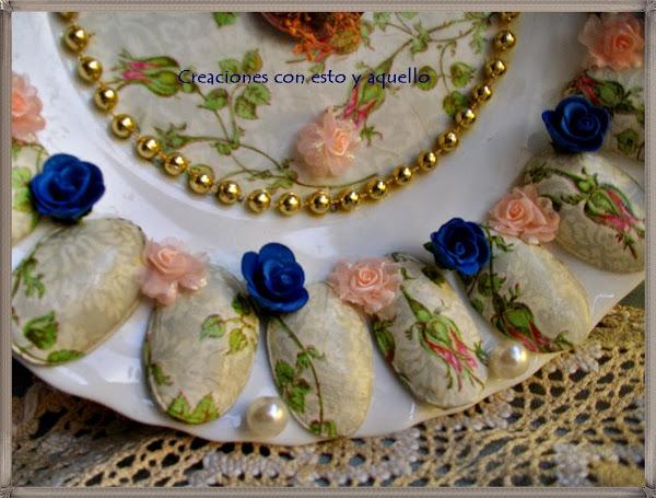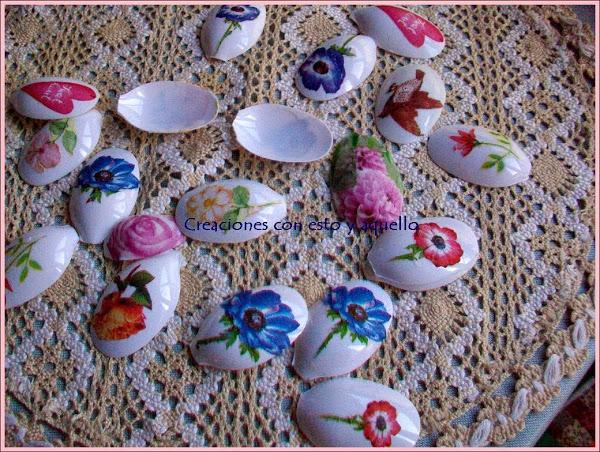 Ya sé...hace mucho que no publico aunque no he dejado de hacer algunas cosas. En éste caso se trata de una fuente de loza o plato grande. Esta decorado con cucharitas de plástico a las que hice decoupage y fui pegando. ( Les dejo fotos de otras cucharas que tengo preparadas para otro trabajo) Y eso es todo. La decoración hizo el resto . Espero les guste. Un abrazo a todas.