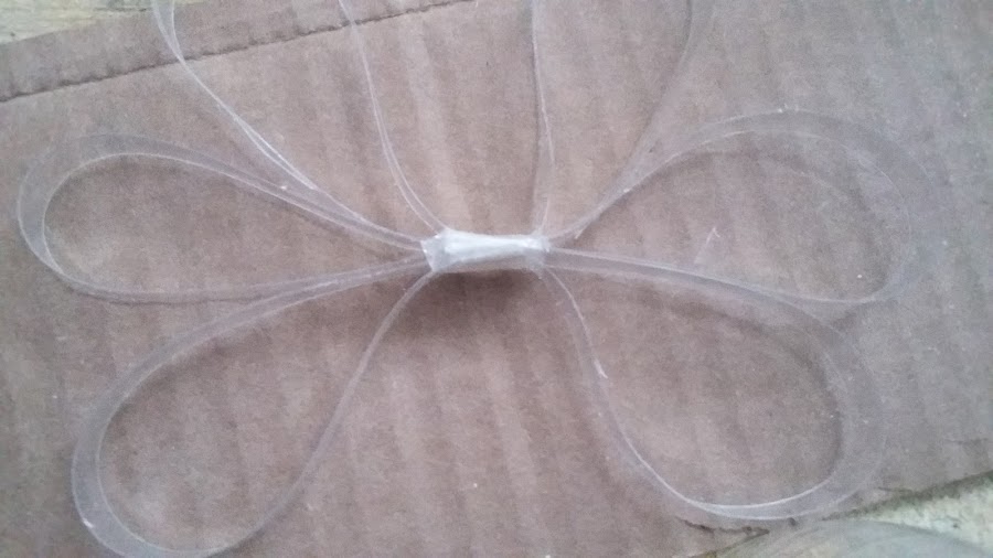 Para las alitas corté 3 tiras de botellas plásticas descartables y las uní con algo de cinta.